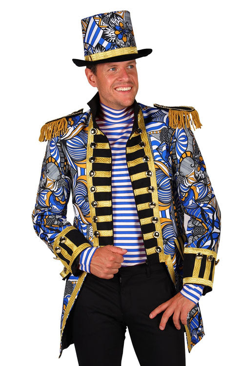 Herenjas African look blauw/wit mt. S