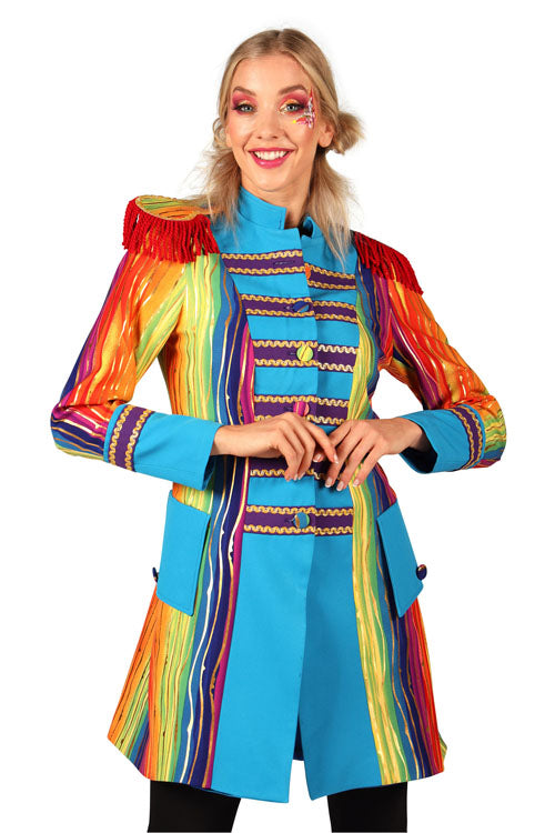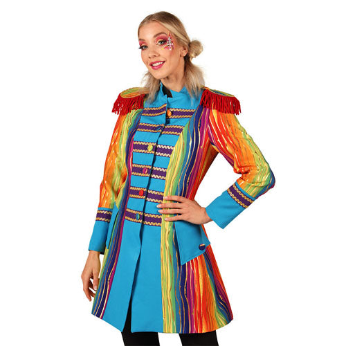 Jas print Coloured dame mt. XS Een echte carnavaljas voor de dame, in vrolijke kleuren!