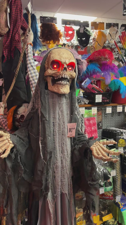 Groeiende reaper met licht en geluid (180 tot 240cm) Deze griezel van 1.80 meter reageerd op geluid. Als je bijvoorbeeld in je handen klapt, dan ga...